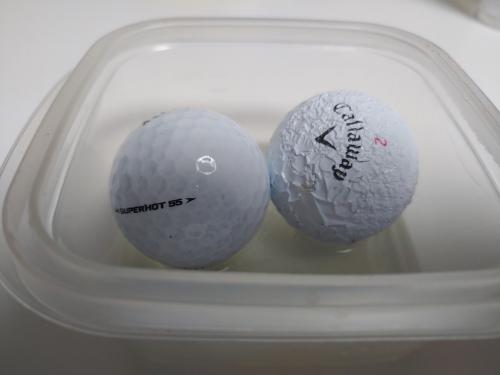 캘러웨이 3피스 superhot 55와 리페인트된 chrom soft를 함께 아세톤에 담궈본 사진입니다.