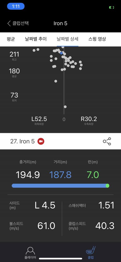 전 좀 우려스러운데요.. 지금 좌우 편차가 80미터에 달합니다. 아이언으로 180~190 때리는데 말이죠.