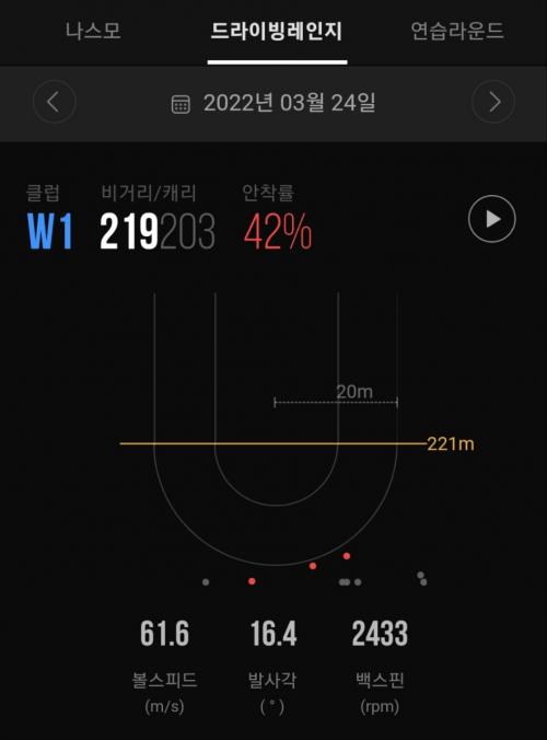 매장에 따라 센서 조정하는 정도에 따라 달라요. 비거리 차이는 신경 쓰지 마시고 방향성이랑 구질 중심으로 보시는게 좋아요. | ||