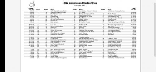 pga tour 웹사이트에 가시면 tee times 메뉴가 있는데, 그거 클릭하시고 선수 나오는 부분 윗쪽에 롤렉스 시계가