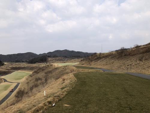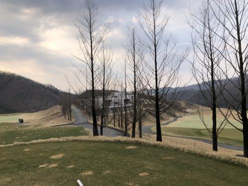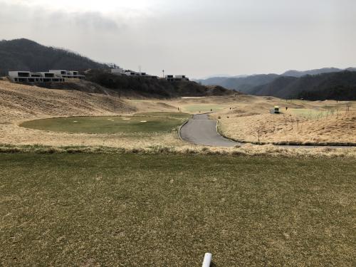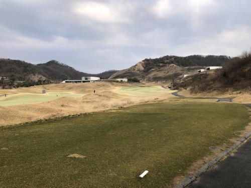중지 잔디는 아직 올라오기 전이라 누렇습니다. 초록색 페어웨이는 색소 성분이 들어있는 영양제 때문이라고 하네요. 나름 아이디어 상품인 것 같습니다.