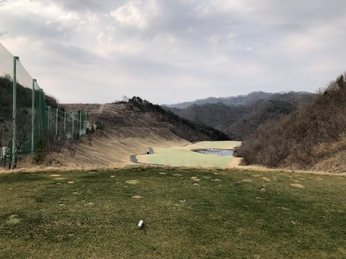 인코스 2번째홀입니다. 오르막 직선 코스입니다. 여기도 은근 짧아서 드라이버가 잘 맞으면 60m 컨트롤 샷을 해야 하는데, 포대 그린이라 그린 오버하기 딱 좋습니다.