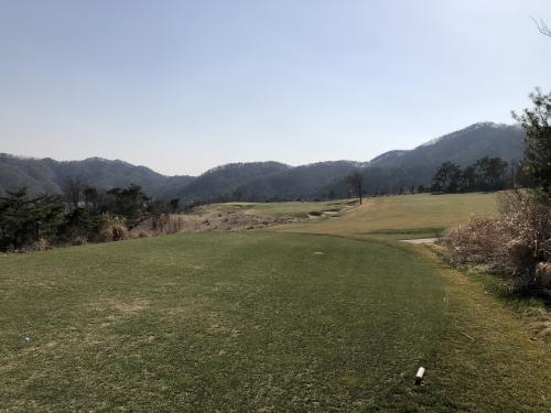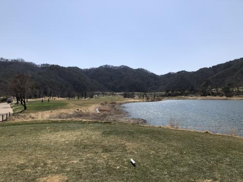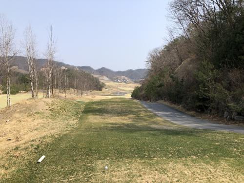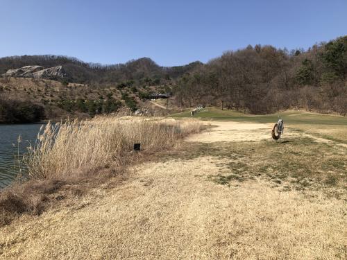 아웃코스 첫 홀 파5입니다. 이날 햇살도 좋고 기온도 높았지만 바람이 좀 셌습니다. 2~3클럽 바람이 상시 부는데 파5에서 정통으로 앞바람이 부네요. 이 홀이 (제 기준으로) 2온이 가능한 유일한 파5인데 아쉬웠습니다.