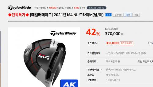 m4 드라이버 마지막 물량떨이할때 iz 특주샤프트 껴서 32만원정도였습니다. 저건 비싸보입니다. | ||
