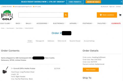 인보이스에는 퍼터 상세옵션 정보도 함께 있습니다.