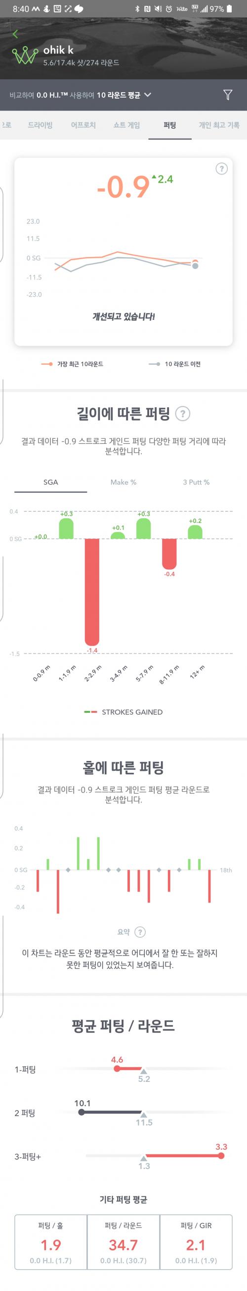제 기억으로는 2014년 말부터 홀 별로 퍼팅 수를 기록하기 시작하였는데, 워낙 못 쳐서 타수와 퍼팅수만 기록하는 것도 정신이 하나도 없었죠.