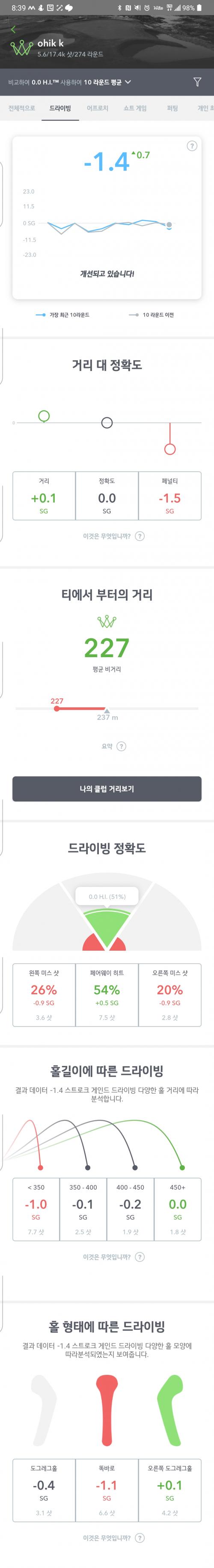 참고로 Arccos앱은 이런 단순 데이터보다 자기네들이 가지고 있는 데이터를 기반으로 제공하는 Analytics가 정말 좋습니다. (아래 스크린 샷과 같이 나옵니다.)