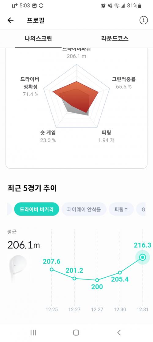 드디어 1년 만에 스피드도 늘고, 평균 비거리가 200에 도달.ㅠ ㅠ