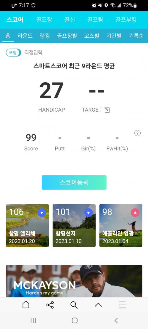 그린에서도 뒤땅 나오는걸 버디찬스에서 더블로 체험했습니다.힘들어가니 이상하게 쳐지드라구요 ㅠ ㅠ | ||