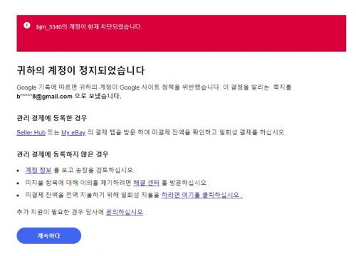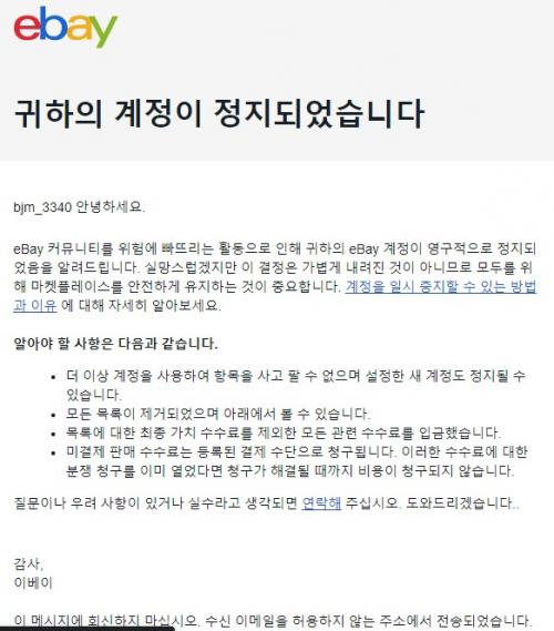 이베이는 아주 예민하더라구요. 저도 몇번 정지 당했는데 그냥 새로 뚫었습니다. | ||
