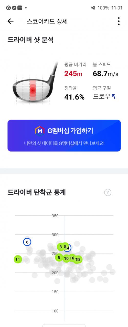 너무 좋은데요~~ 평균 비거리 245 부럽습니다~~^^ | ||