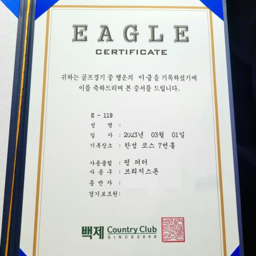 백제cc에서 이글증서를 주는군요. 축하드려요~~