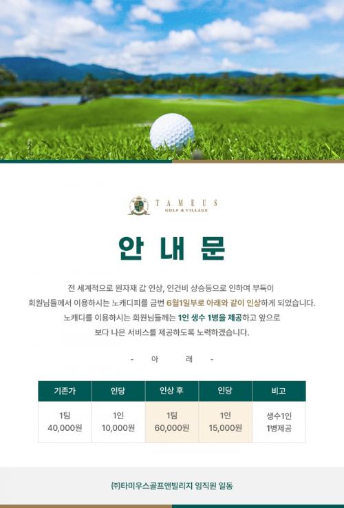 노캐디 환경부담금 또한 신박하네요 ㅎㅎㅎ 에혀 골퍼들만 봉이죠 ㅠㅠ | ||