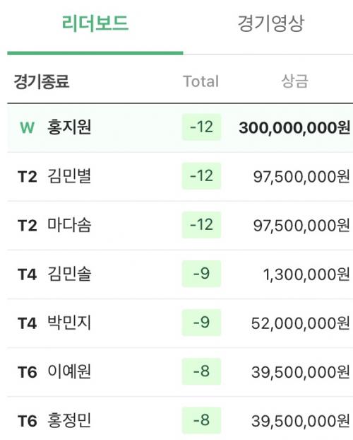 공동 2위라서 그럴 거에요 !! ㅎㅎ 아마 2위 상금도 1억 초중반일거에요 단독이면 | ||