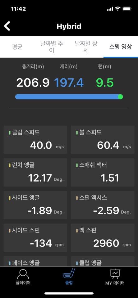 보시다시피 잘 친 데이터인데 거의 차이가 없습니다.(연습장 기준 4번 유틸은 190~200정도 봅니다.)