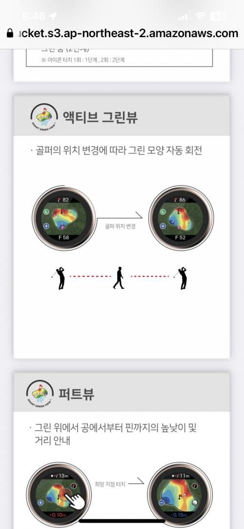 그린 올라가기 전에는 자동으로 돌아가고(액티브그린뷰), 그린 위에서는 안돌아갑니다(퍼트뷰). | ||
