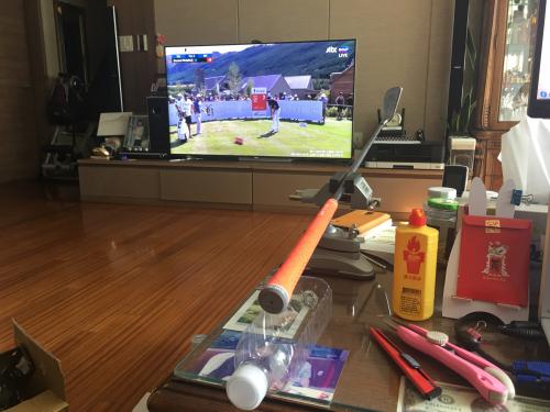 넘게 한것 같은데 발로 헤드잡고 한손으로 샤프트잡고 한손은 칼 잡고 손이 두개는