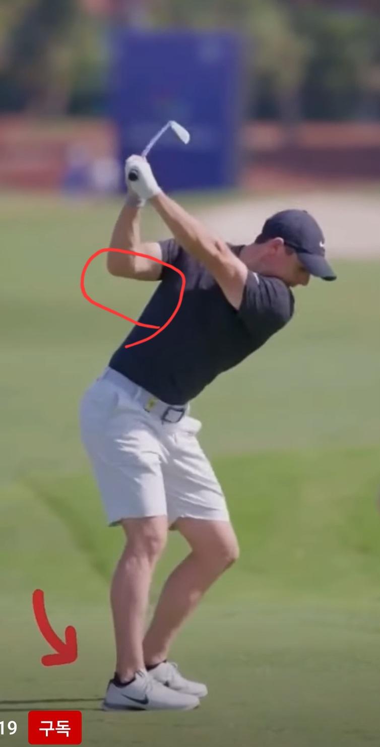맥길로이 뒤에서 찍은영상 보면 팔꿈치 너무 붙인거 같아서 이상합니다. |