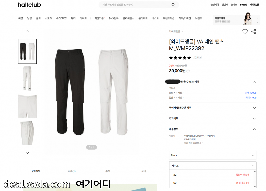 오 레인팬츠를 따로 준비하고 싶지는 않지만 핏이 좋아보여서 들어가 봤더니 사이즈가 없네요