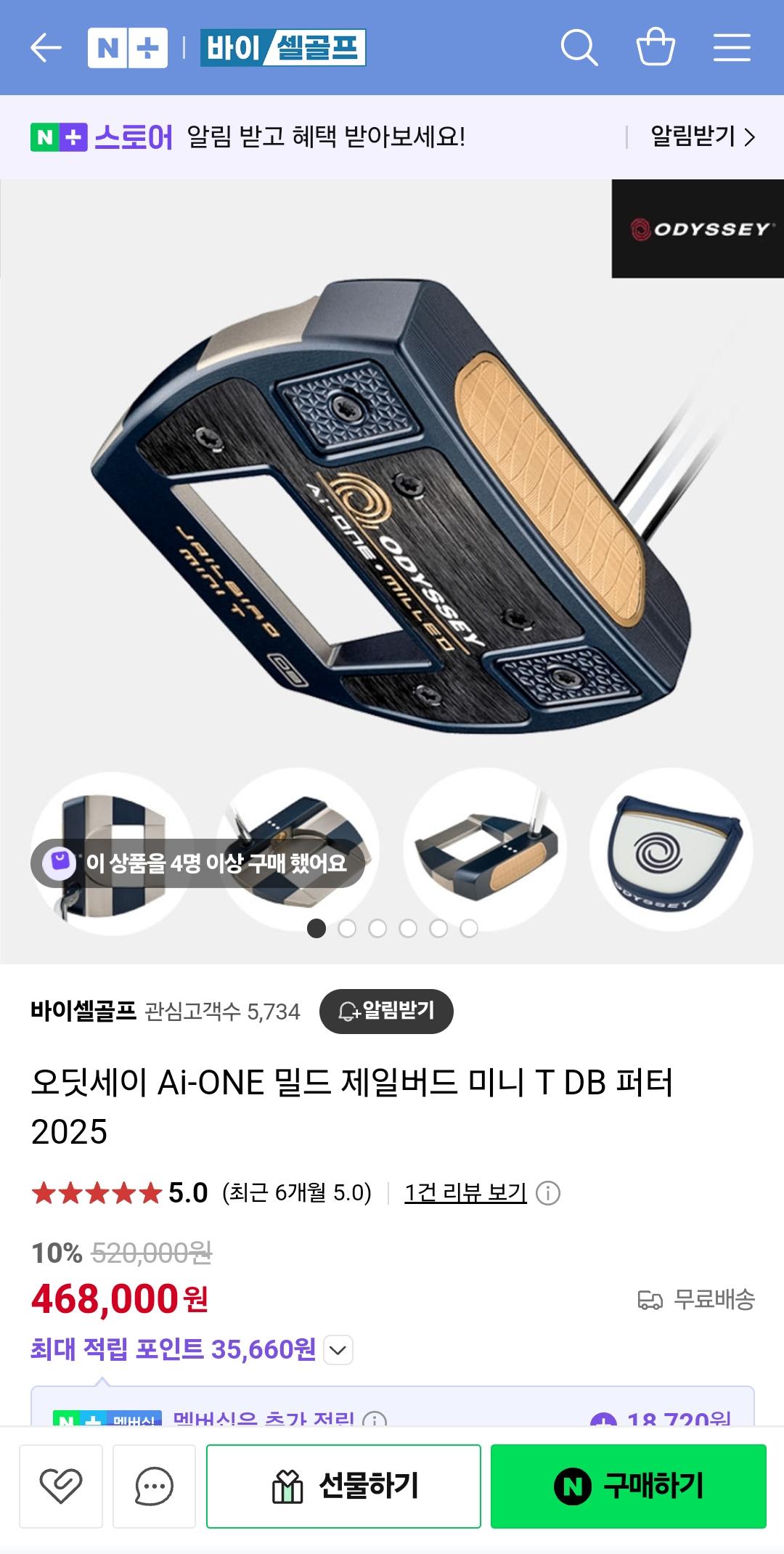 오디세이 밀드 퍼터 별렌치 사이즈 아시는분 계실까요?