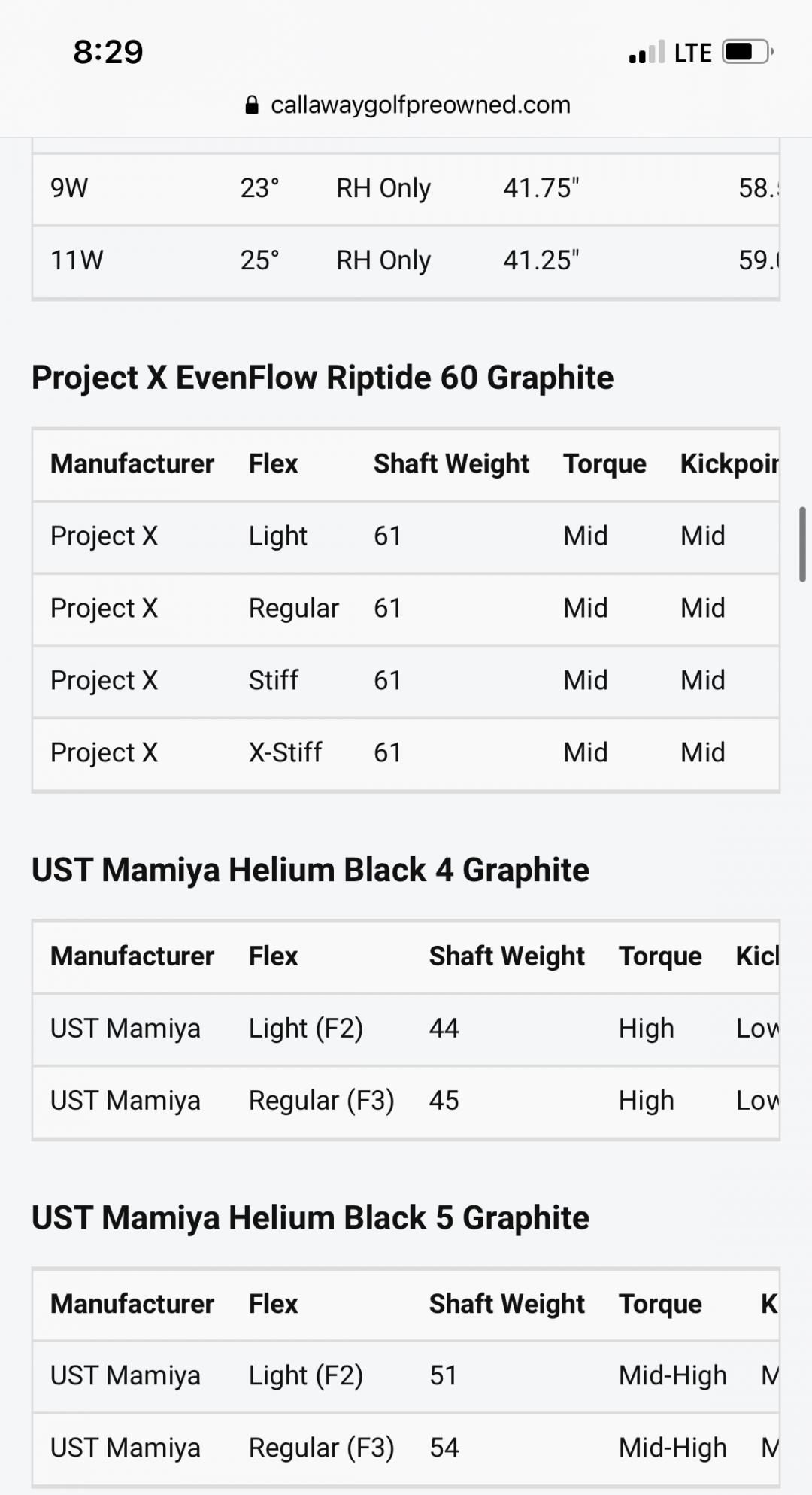 그런데 샤프트 스펙 차이가 많이 나보이네요