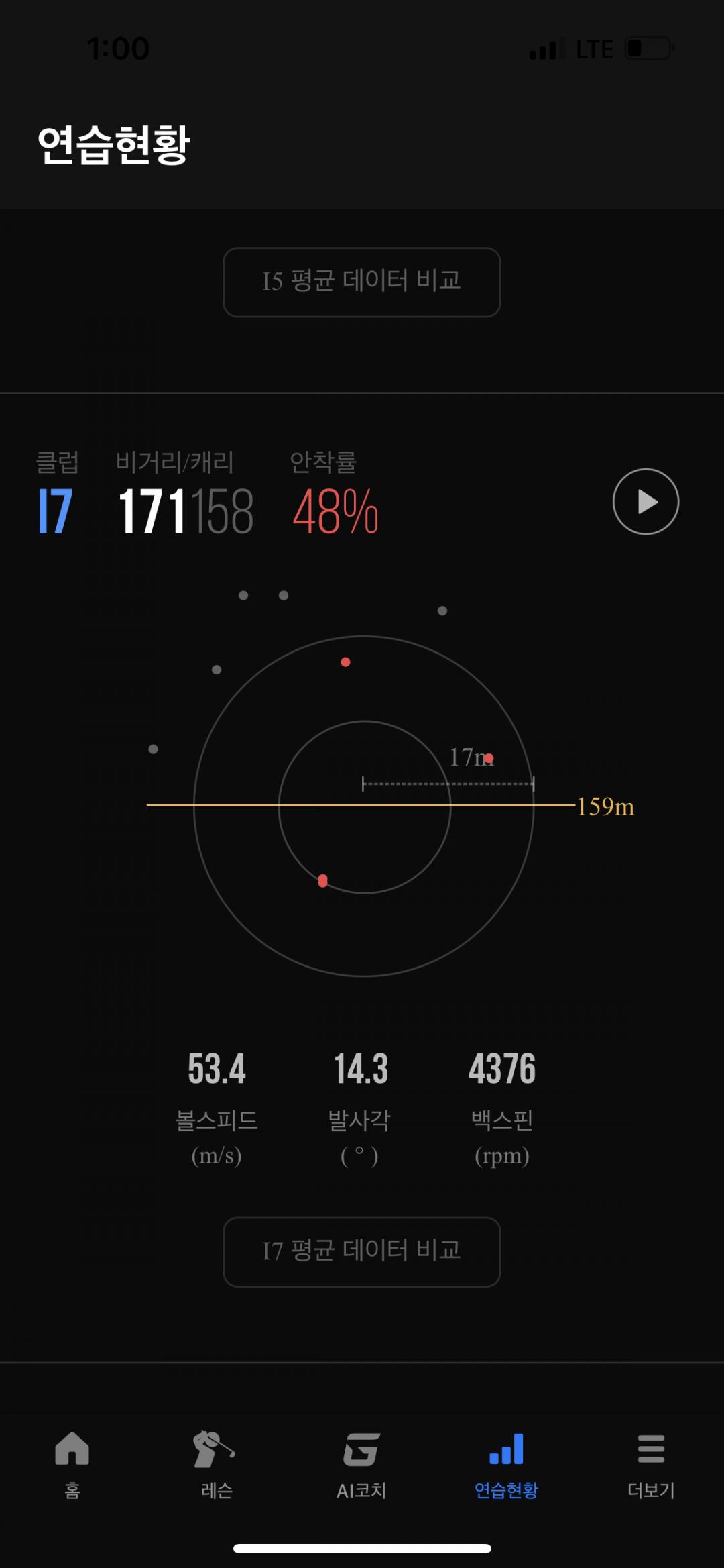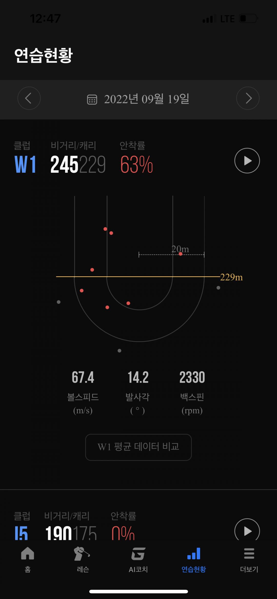 데이터는 전체 연습볼수 200개정도의 평균치입니다.