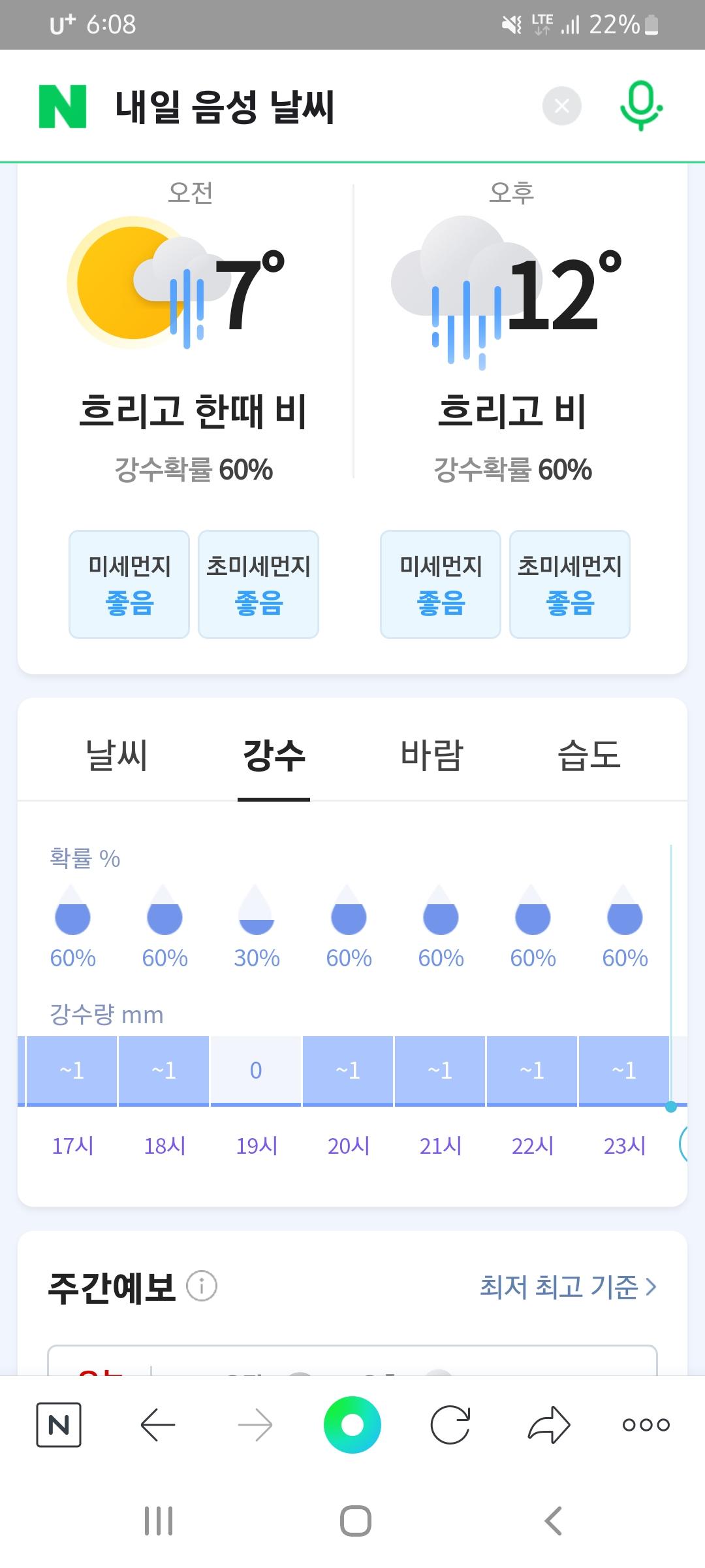 처음엔 우중 골프와 강수량에 대한 감이 없어 고민하다 한 번 나가보니, 이렇게까지 치는 건 정말 아니라는 확신이 들더라구요. 그 다음부터 네이버 예보 4개사 중에 2개사 이상 비올예정 35%넘으면 취소기한에 무조건 취소합니다. 2개사 35%이상이면 거의 비오더라구요. |