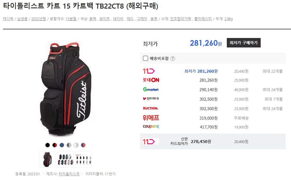 다나와 보니까 타이틀에 15구 카트백이 있네요. 제가 좀 분할되는 걸 좋아해서...