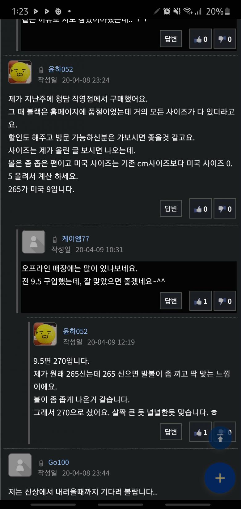 전 발볼이 좀 있는 275가 정사이즈 입니다. 윤하 052님 말듣고 해외구매는 대부분 10.5로 하였지만 이 제품은 10으로 구입했어요. 반사이즈 작게 구매가 적당했어요