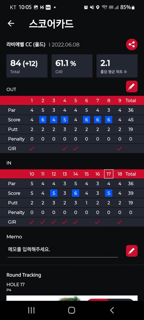 벌타나 GIR은 따로 기록이 안되서 아쉽습니다 ㅠ