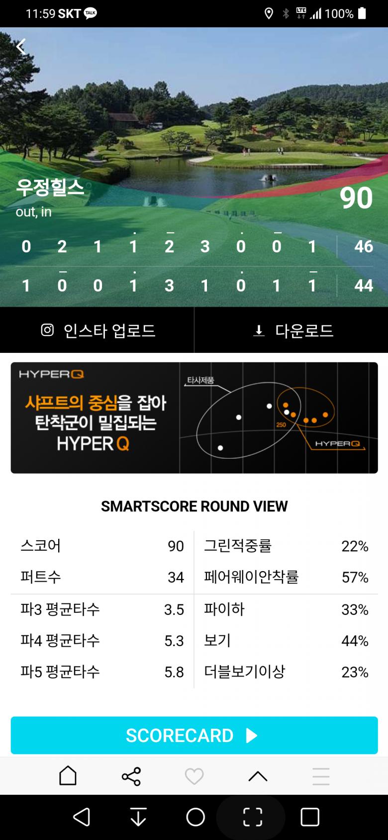 (캐디가 스마트스코어는 한두개는 덜 적어 주더군요. ㅎㅎㅎ)