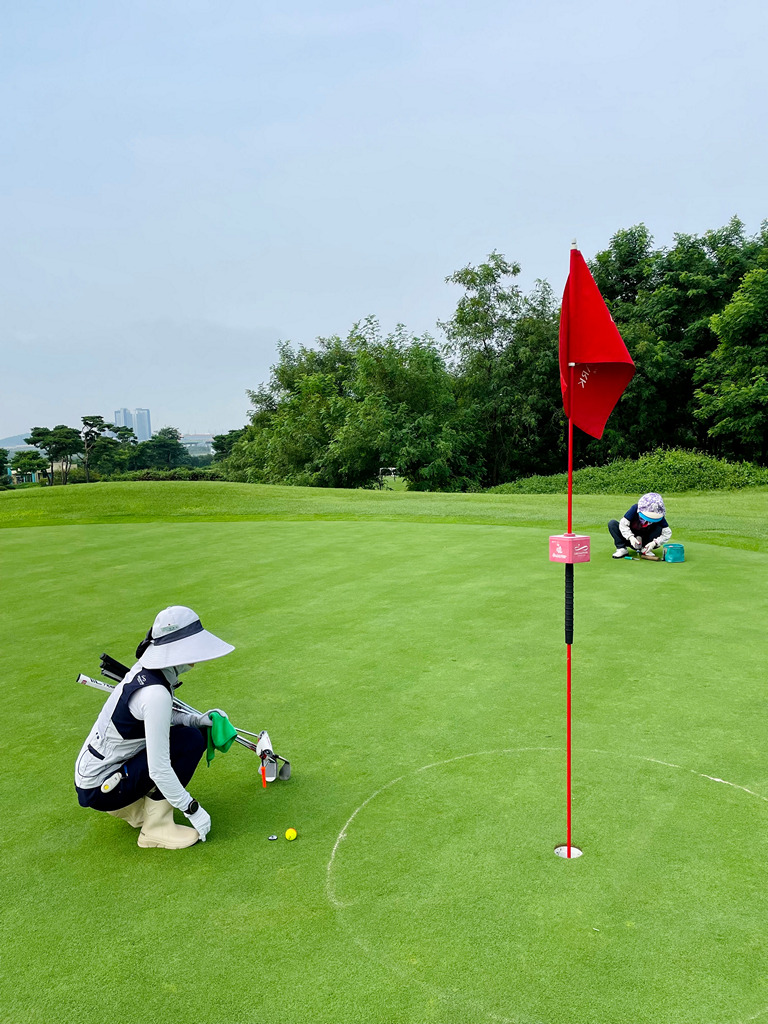어드레스 잡았다가... 풀고 캐디언니한테 확인합니다. '오른쪽이 좀 있나요?'