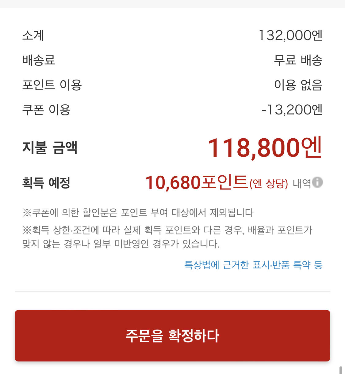 132,000 엔 에서 10프로 할인받아서 118,800엔