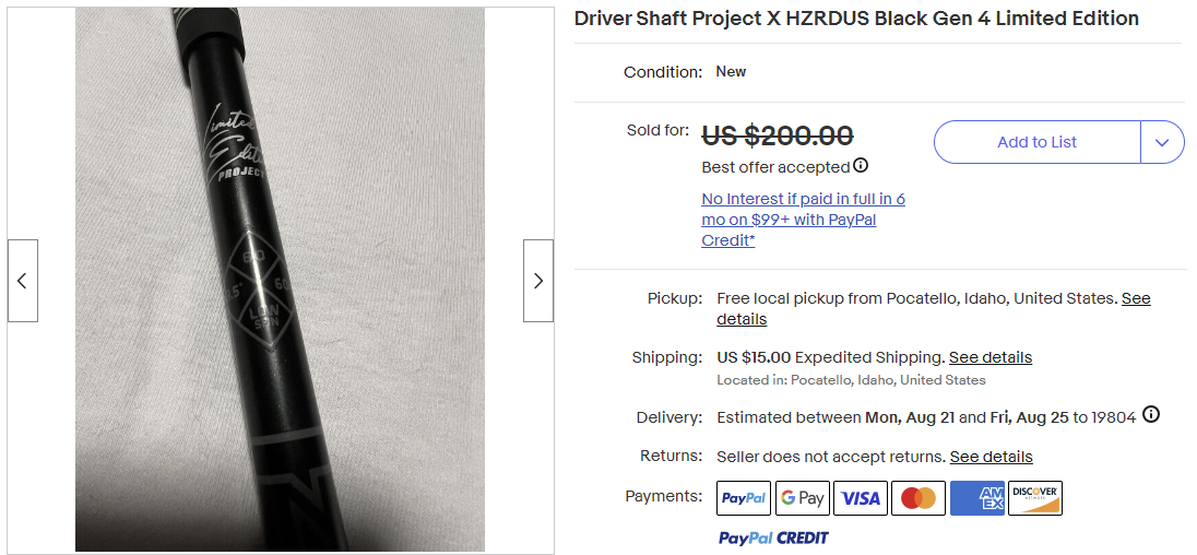 위 글을 보고 헤저더스 샤프트가 다시 궁금해져서 이베이를 둘러봤습니다.