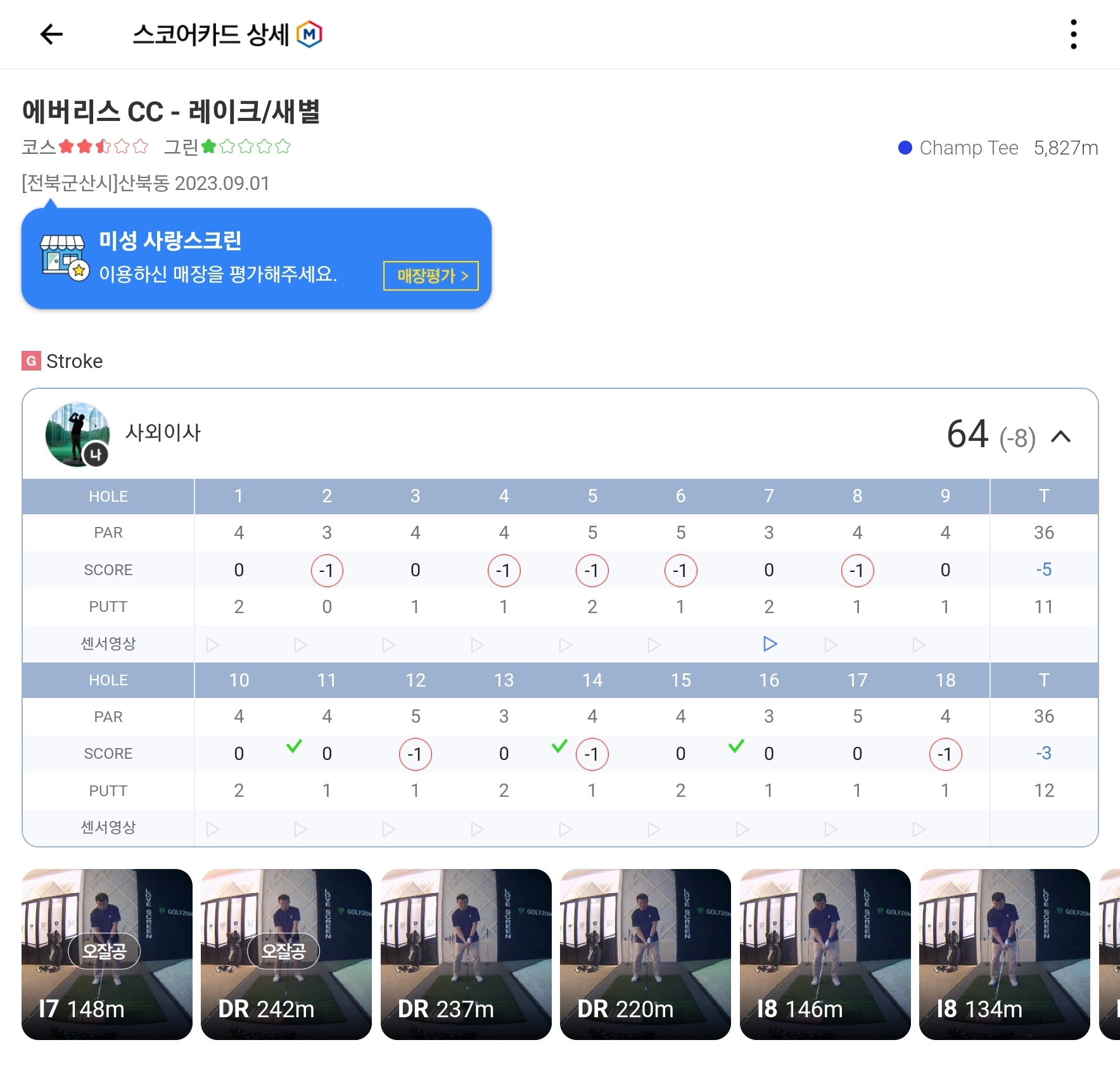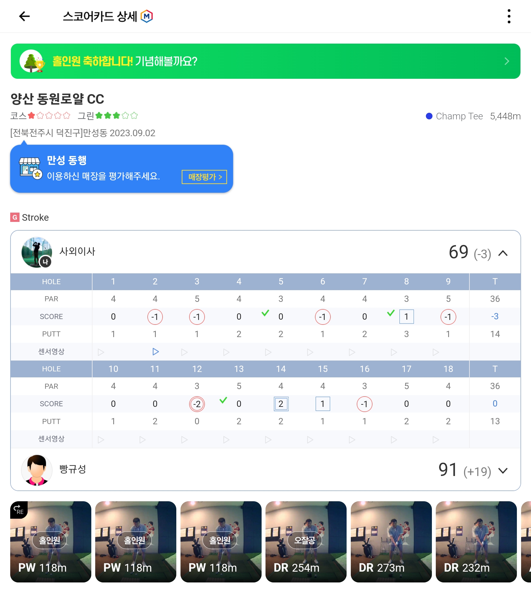 오!!!채와 합이 잘 맞으시나봅니다. 축하드립니다. 드라이버 거리도 짱짱하시니 부럽습니다.