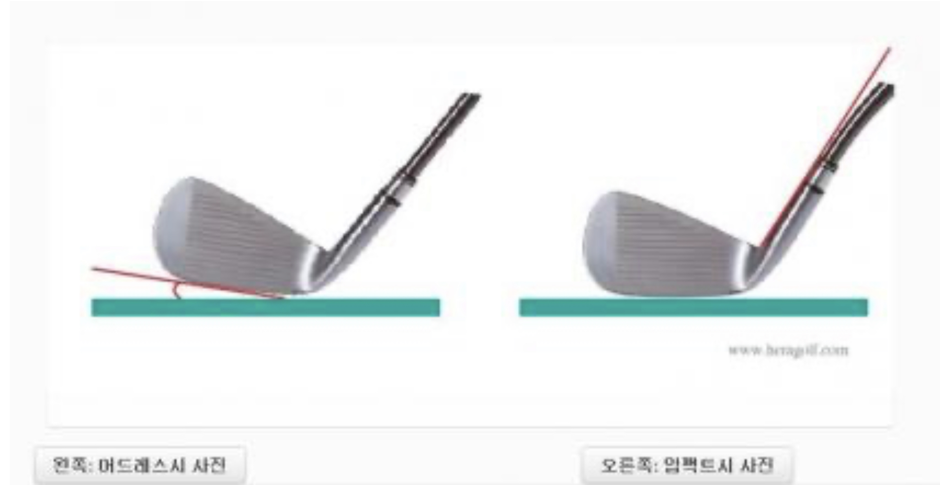 어드레스시 아래처럼 토가 살짝 들리게 어드레스를 해야 임팩트시에 샤프트가 휘면서 스퀘어로 맞게 되는데, 제가 어드레스시에 스퀘어로 정렬을 하다보니 오히려 토다운이 발생하고 있었네요.