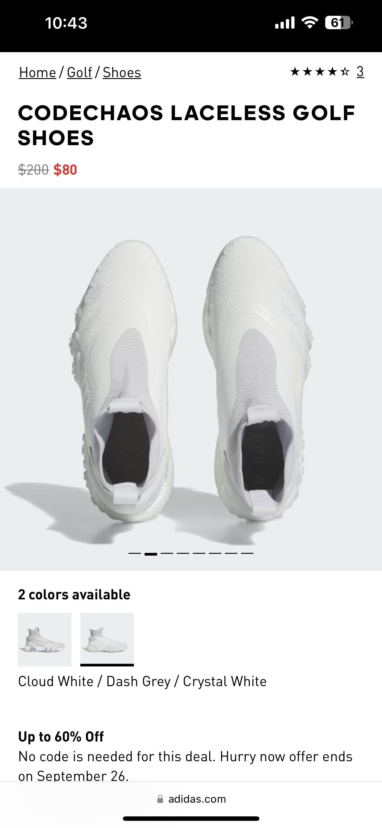 ADIDASNIL 코드 적용시 60달러 입니다. |