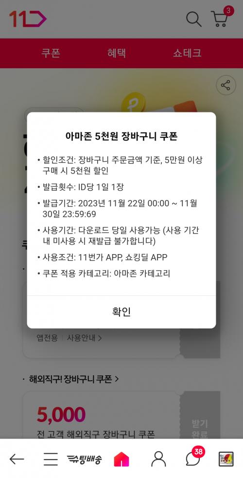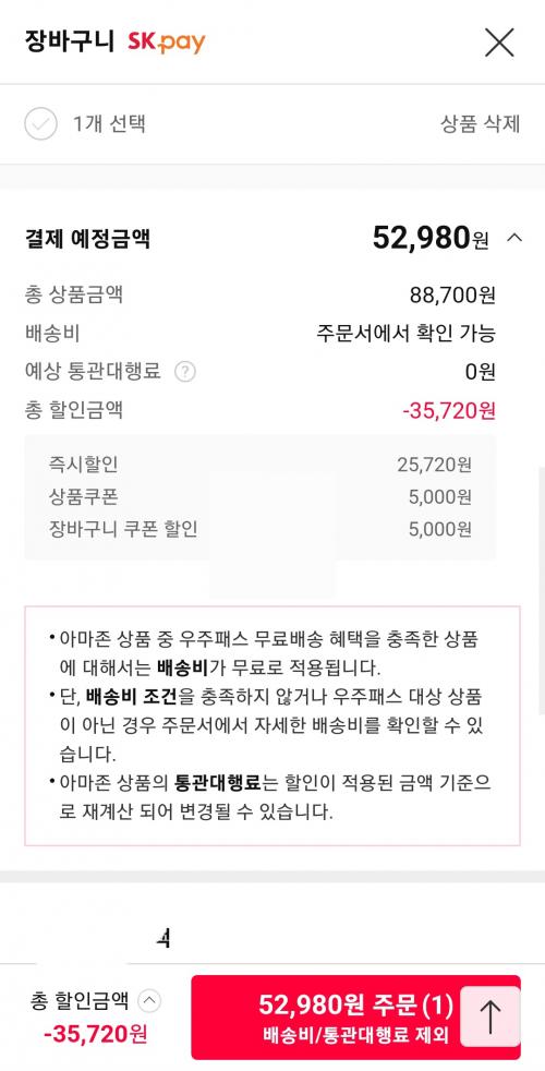 1. 아마존 장바구니 할인 5천원 쿠폰(앱전용)