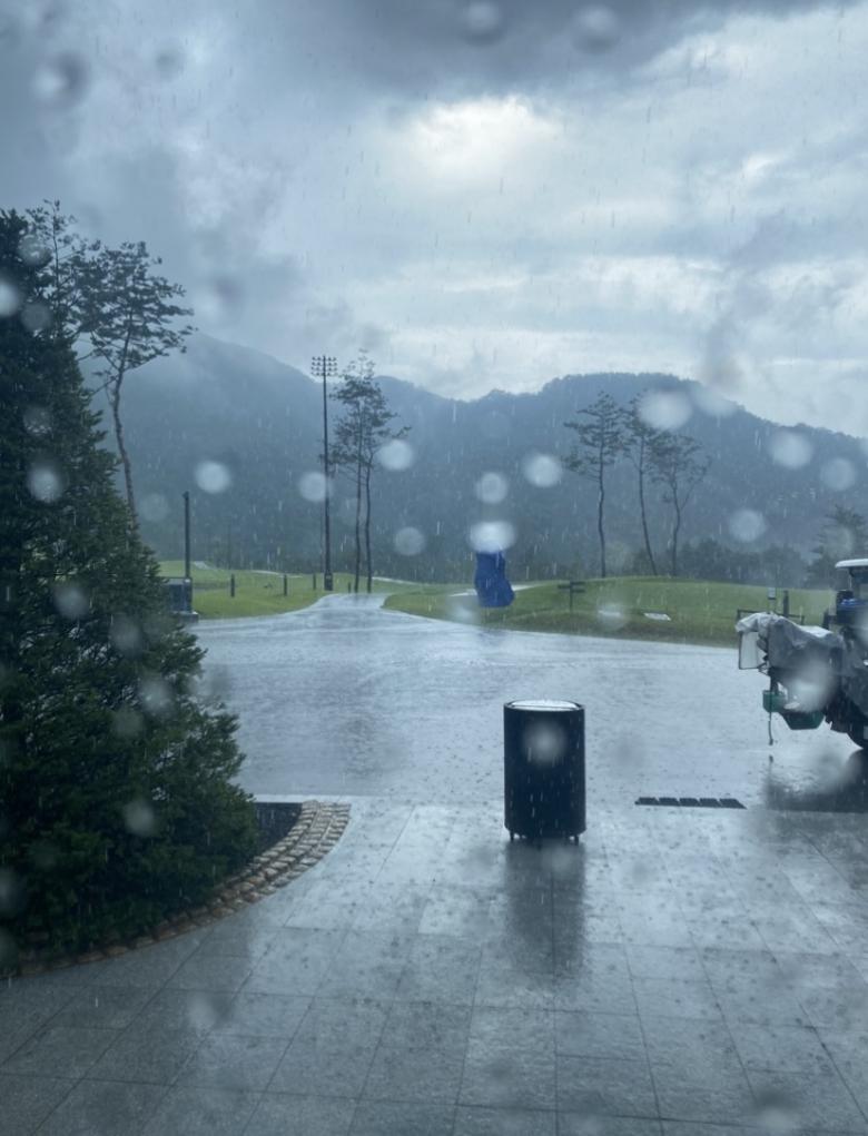 라운딩 중이었는데 후반 15번 홀부터 비가 오기 시작했습니다.