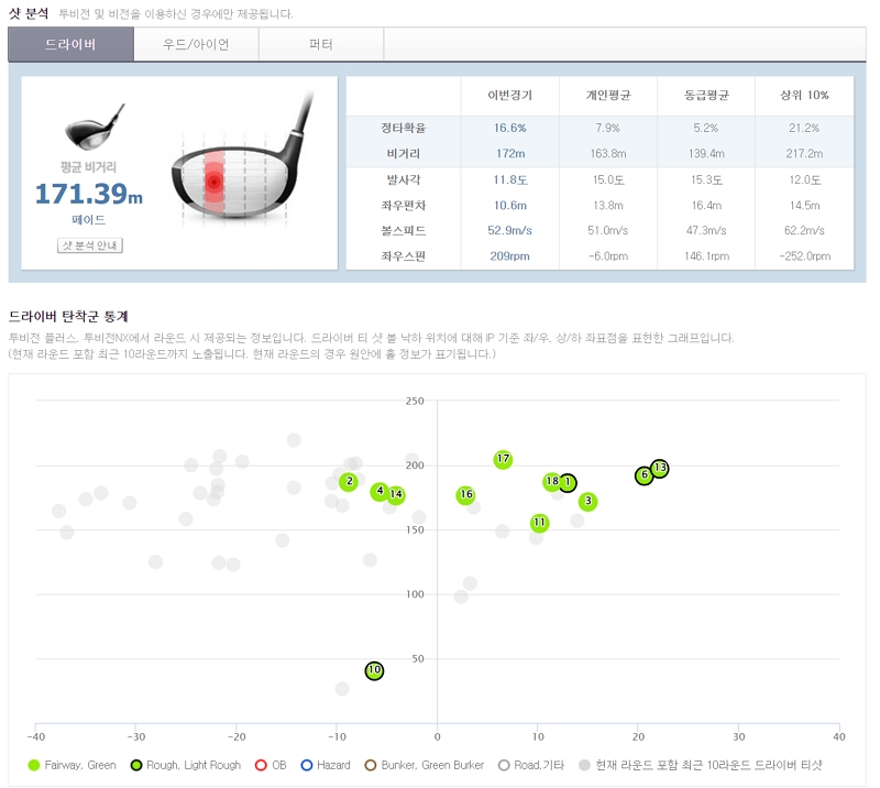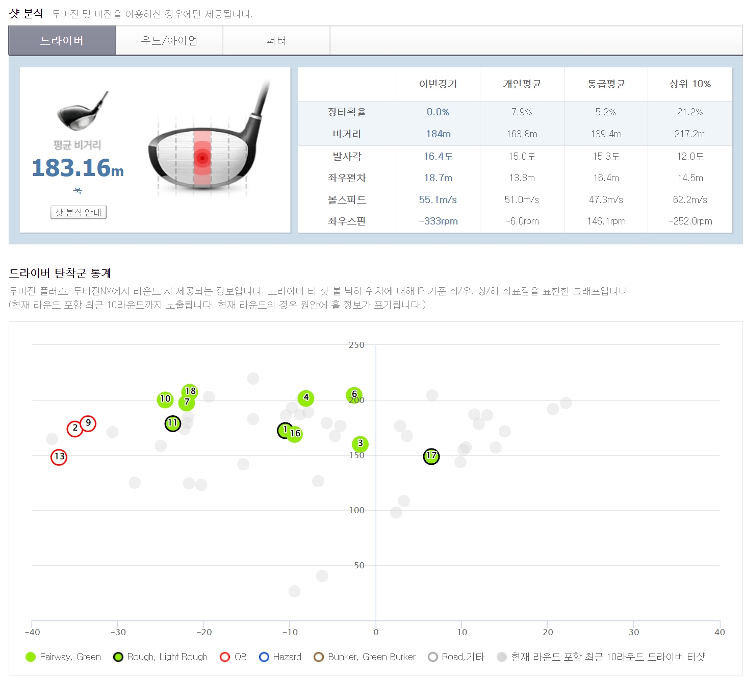 (첫번째 그림이 스텔스HD를 사용하여 2,9,13홀 OB발생, 4번홀 이후부터 일반스텔스로 변경,)
