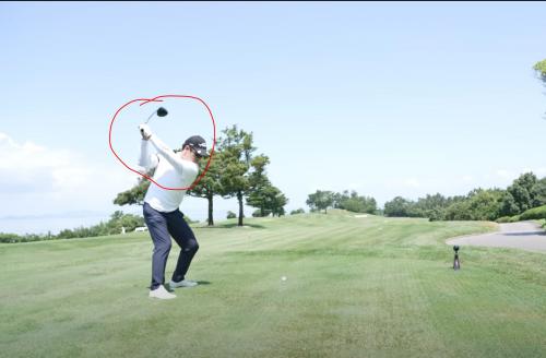 위에 사진은 백스윙 탑이고 아래는 트랜지션된 사진이에요^^ 배꼽이 어디를 보는지 보면 알 수 있습니다^^ | ||