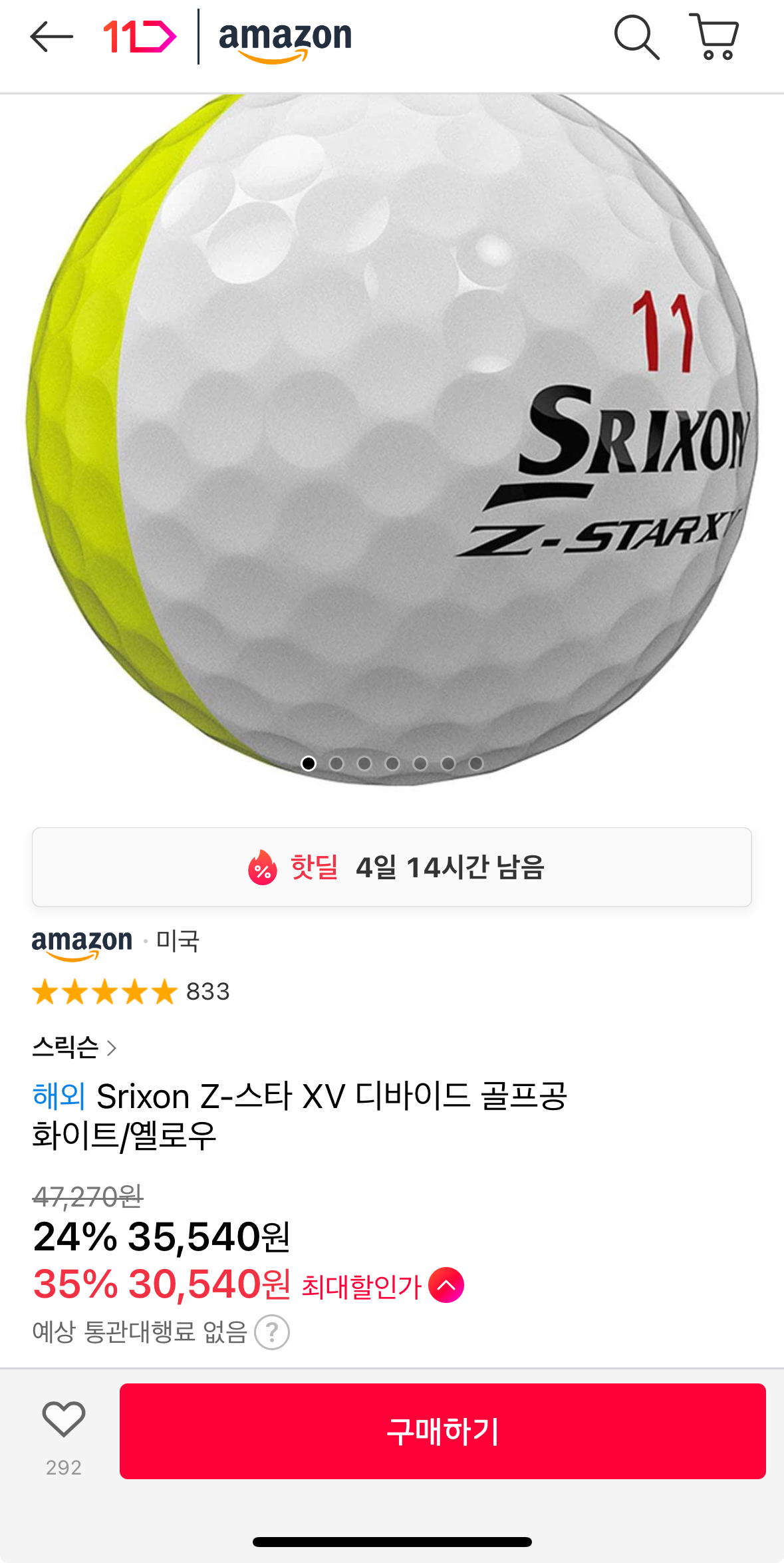 11번가 아마존 스릭슨 z스타vx 반반공 가격이 더 내려갔습니다.. (30,540) > 골프포럼