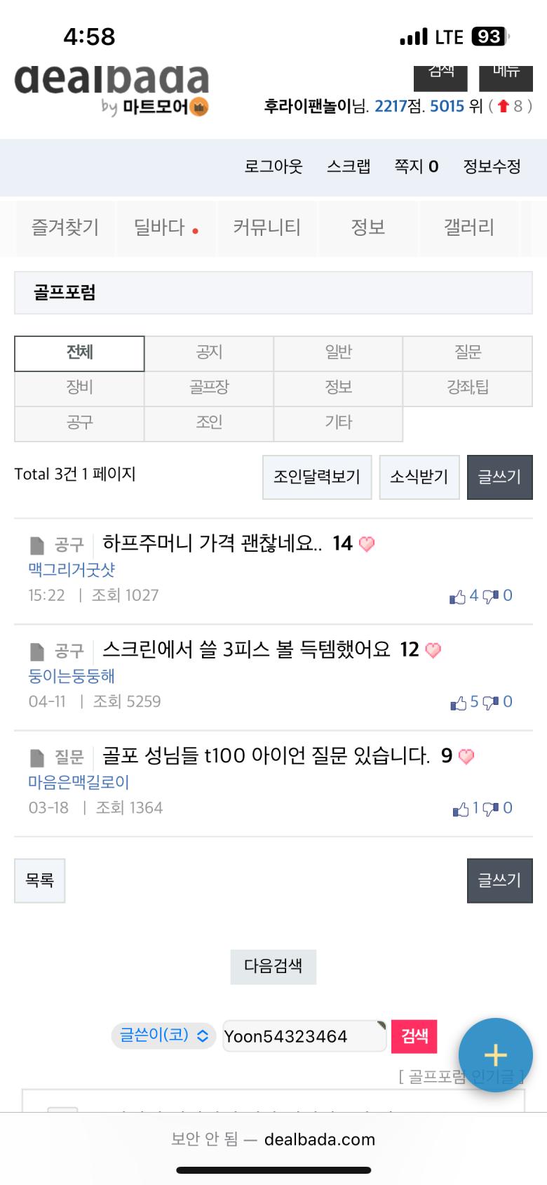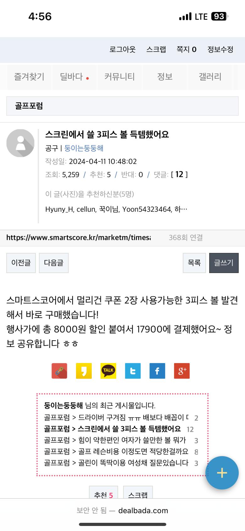 스마트스코어 쓰리피스 공 글 올린분 그리고 아래 두개 댓글 단 사람글이 거기에만 댓글 담 ㅋㅋ | ||