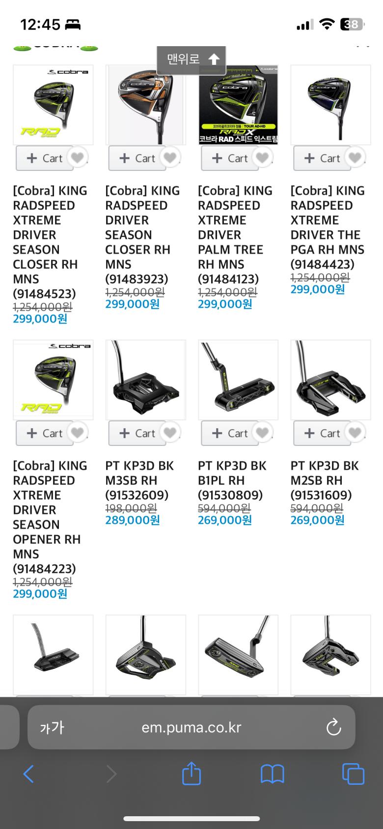 - 코브라 골프 기어 및 악세사리 입고