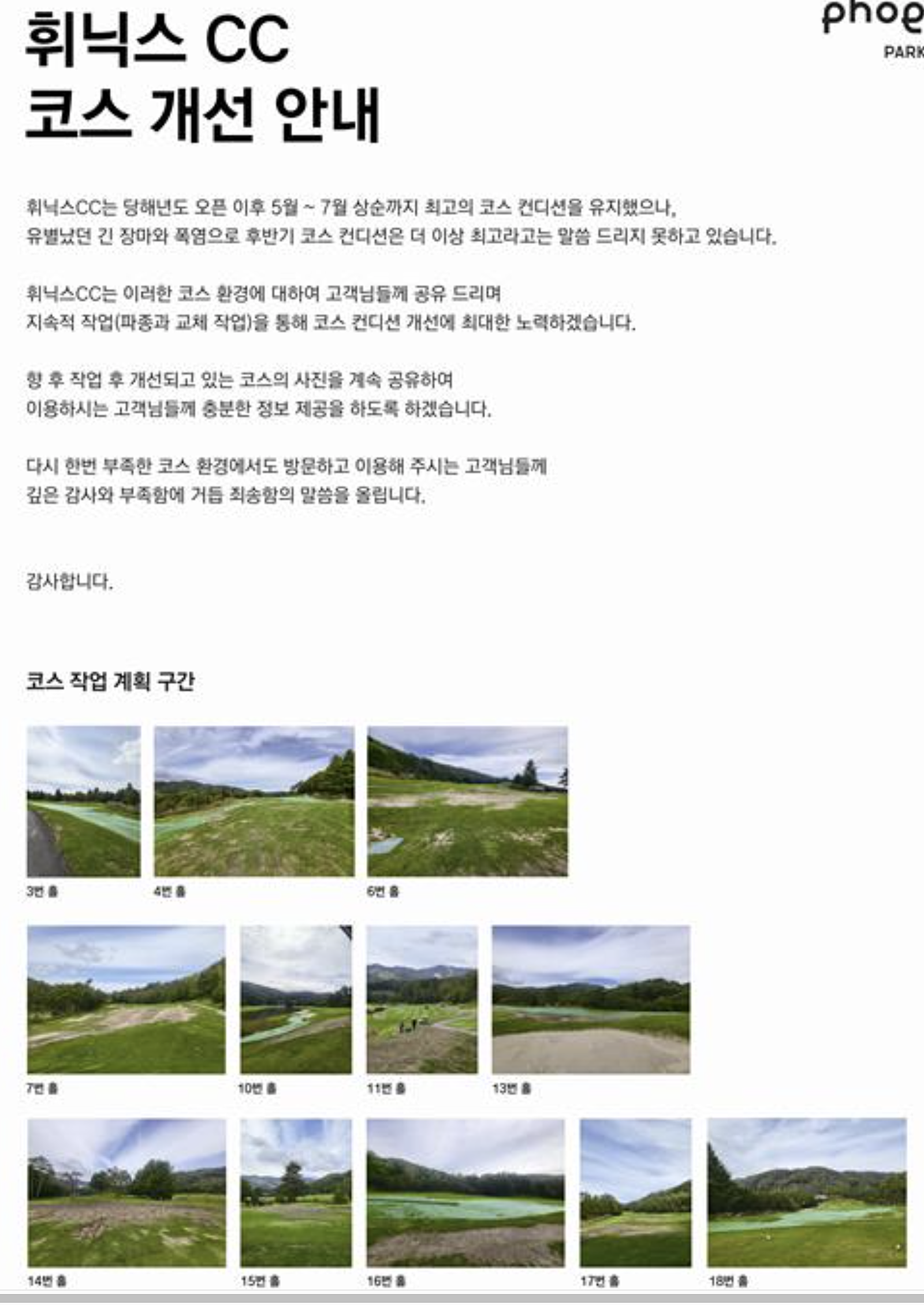 네. 그래도 골프장측에서 빠르게 공지를 올렸네요.
