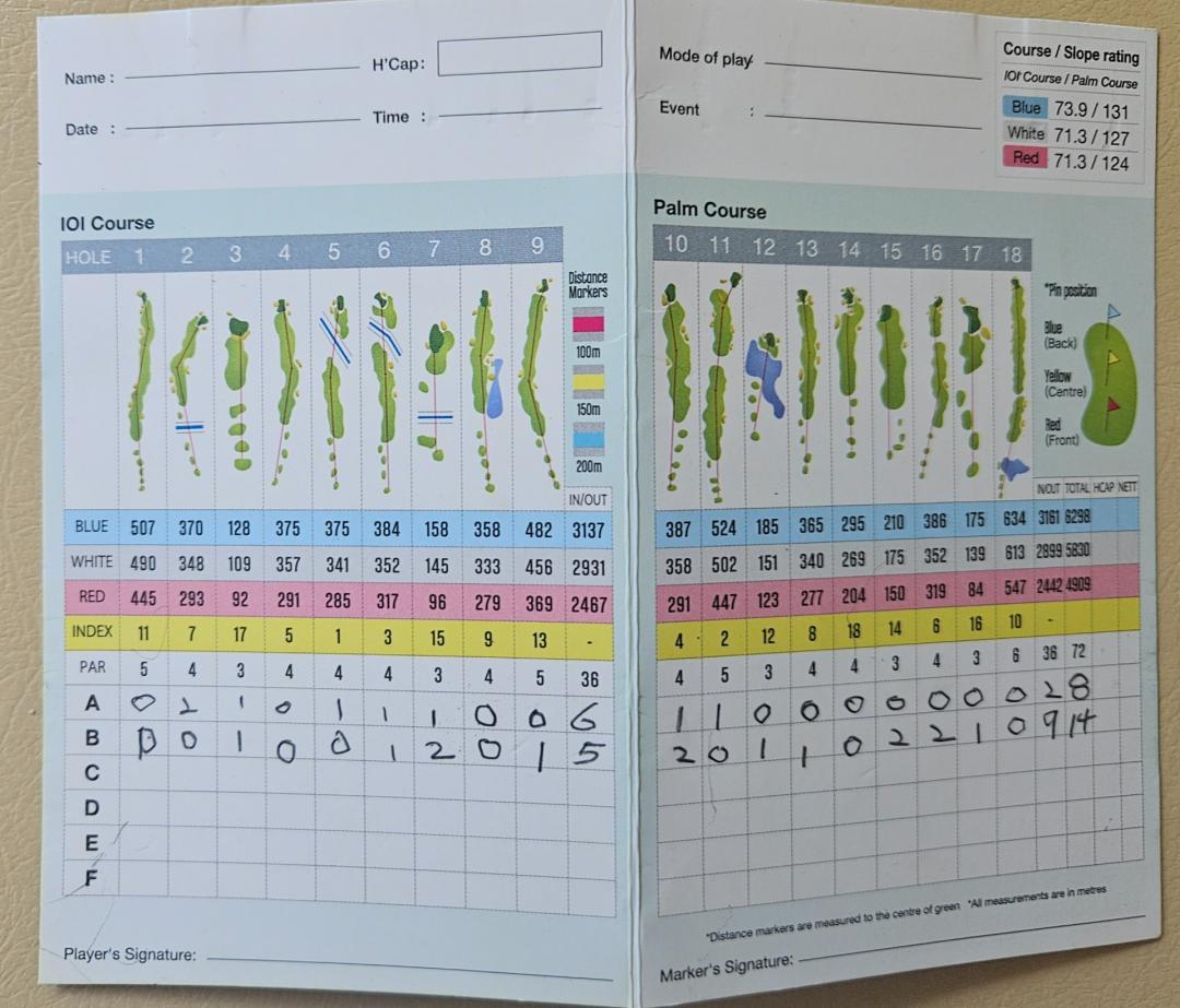 골프장 후기는 그래도 처음 치는 골프장에서 풀백티로 14개 쳤으니 선방했습니다. (CR 73.9/ SR 131, 전장 6298M)