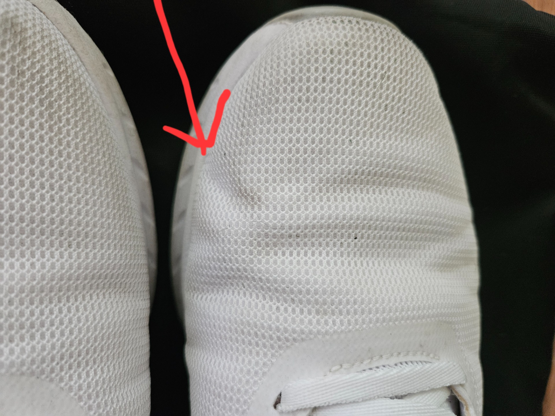 앞 윗부분에 강성을 보강해서 좀 딱딱한재질이 추가되어 있는데 이게 영구변형되어 있어 발가락에 자극을 주어서 버려야하는데요.