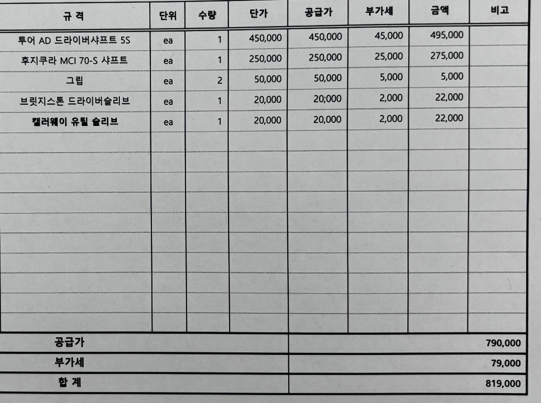 드라이버 샤프트가 50인셈인데...ㄷㄷㄷ |