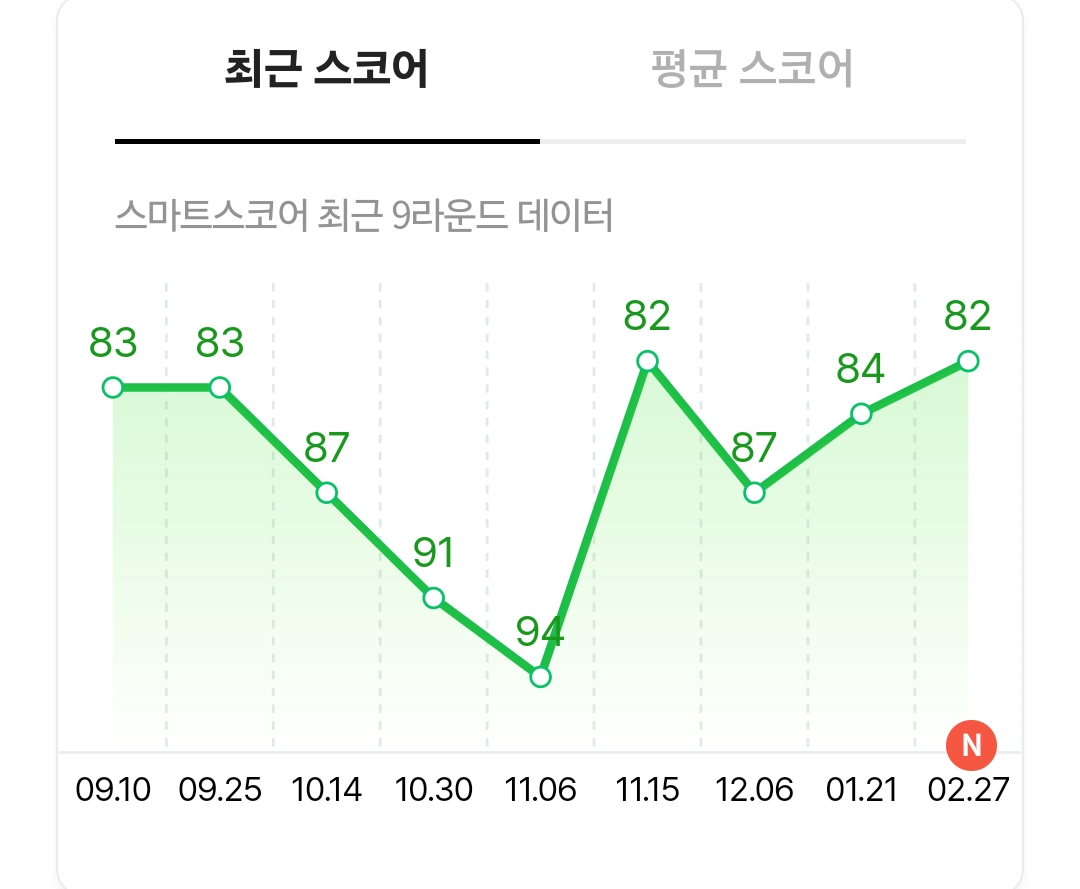 고수시군요!! 90초반대가 라베인데...ㅠㅠ 올해는 꼭 80대 쳐보고 싶네요. |