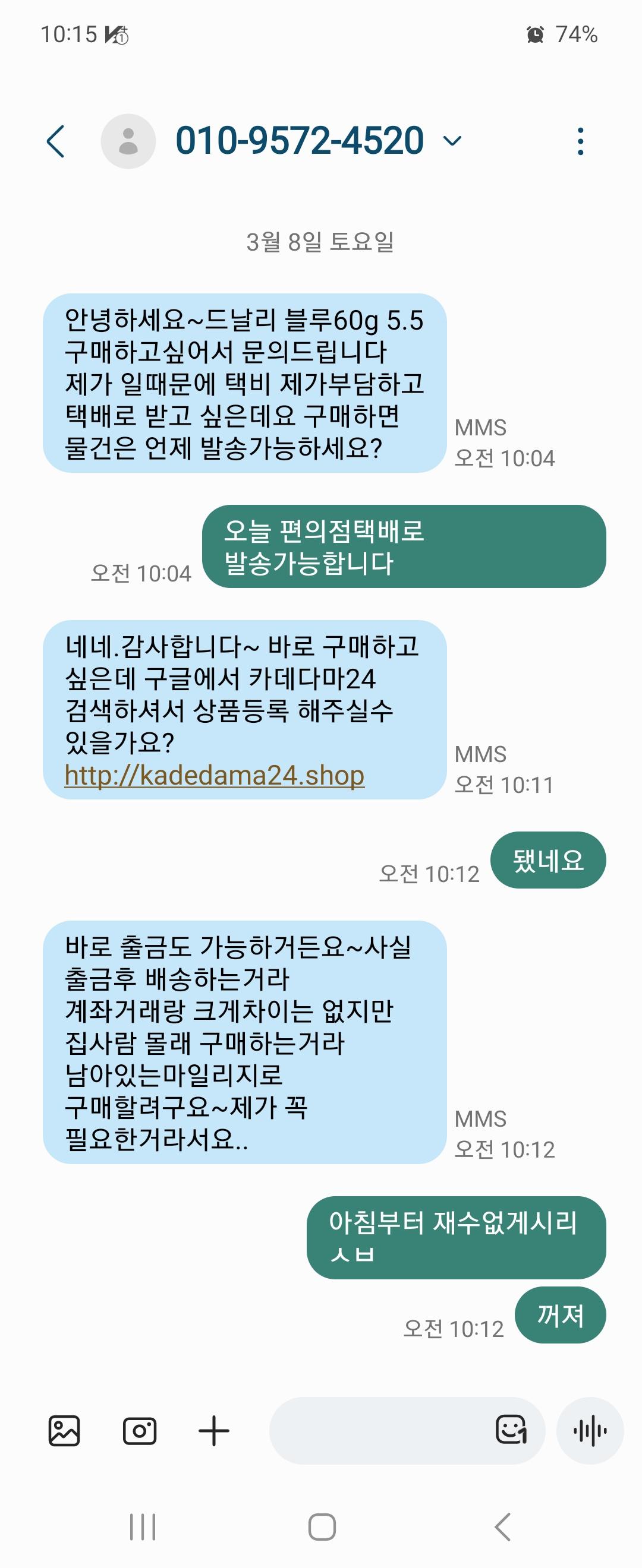 그냥 대답없이 삭제하고 번호 차단.. |